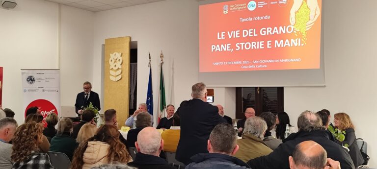 Al Convegno “Le vie del grano. Pane, storie e mani” del 13 dicembre nel Comune di San Giovanni in Marignano, un panel di esperte ed esperti ha animato un incontro nato per rafforzare la cultura dei grani, la consapevolezza delle filiere e il dialogo con la cittadinanza, a pochi giorni della proclamazione della Cucina Italiana Bene Immateriale Unesco.
